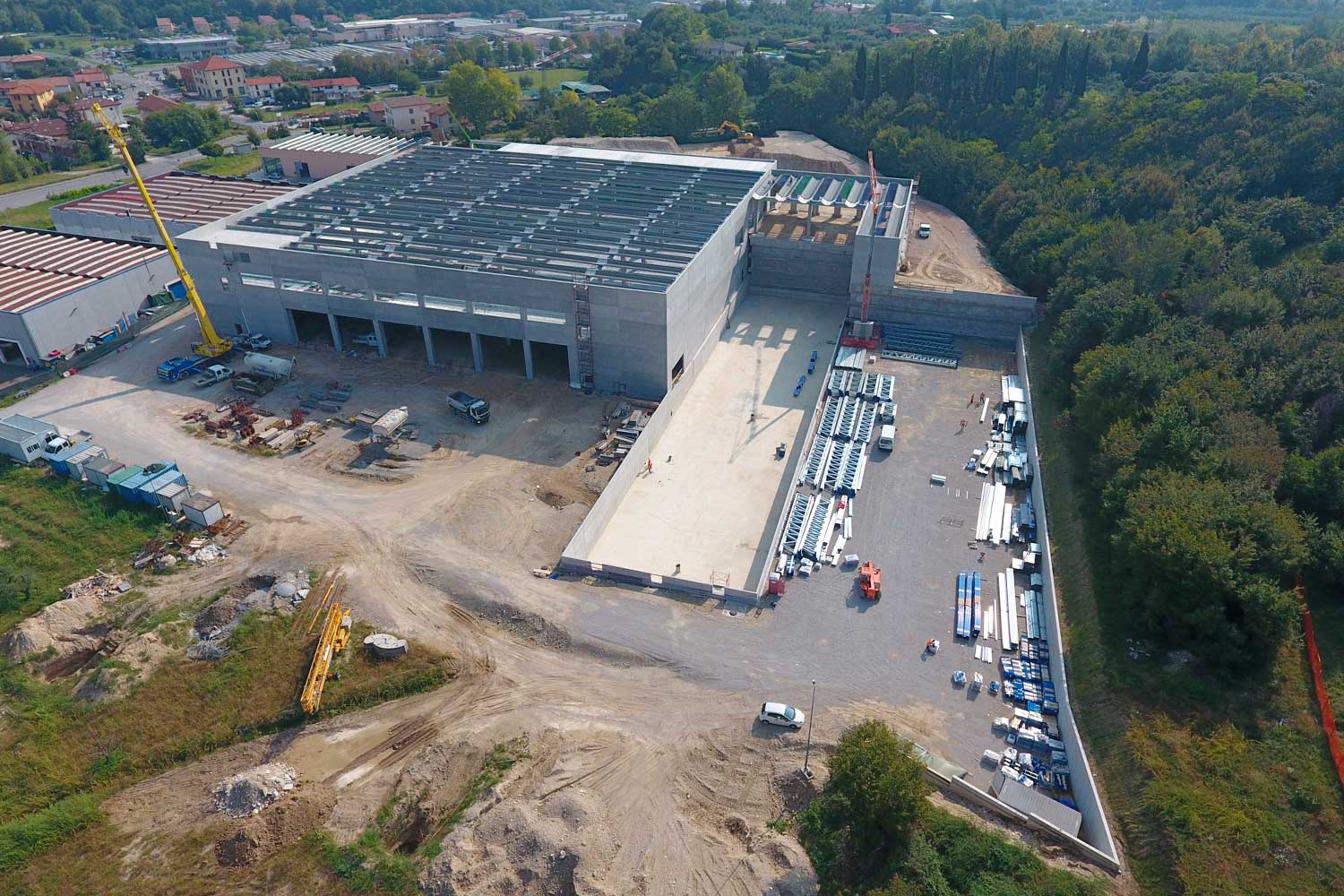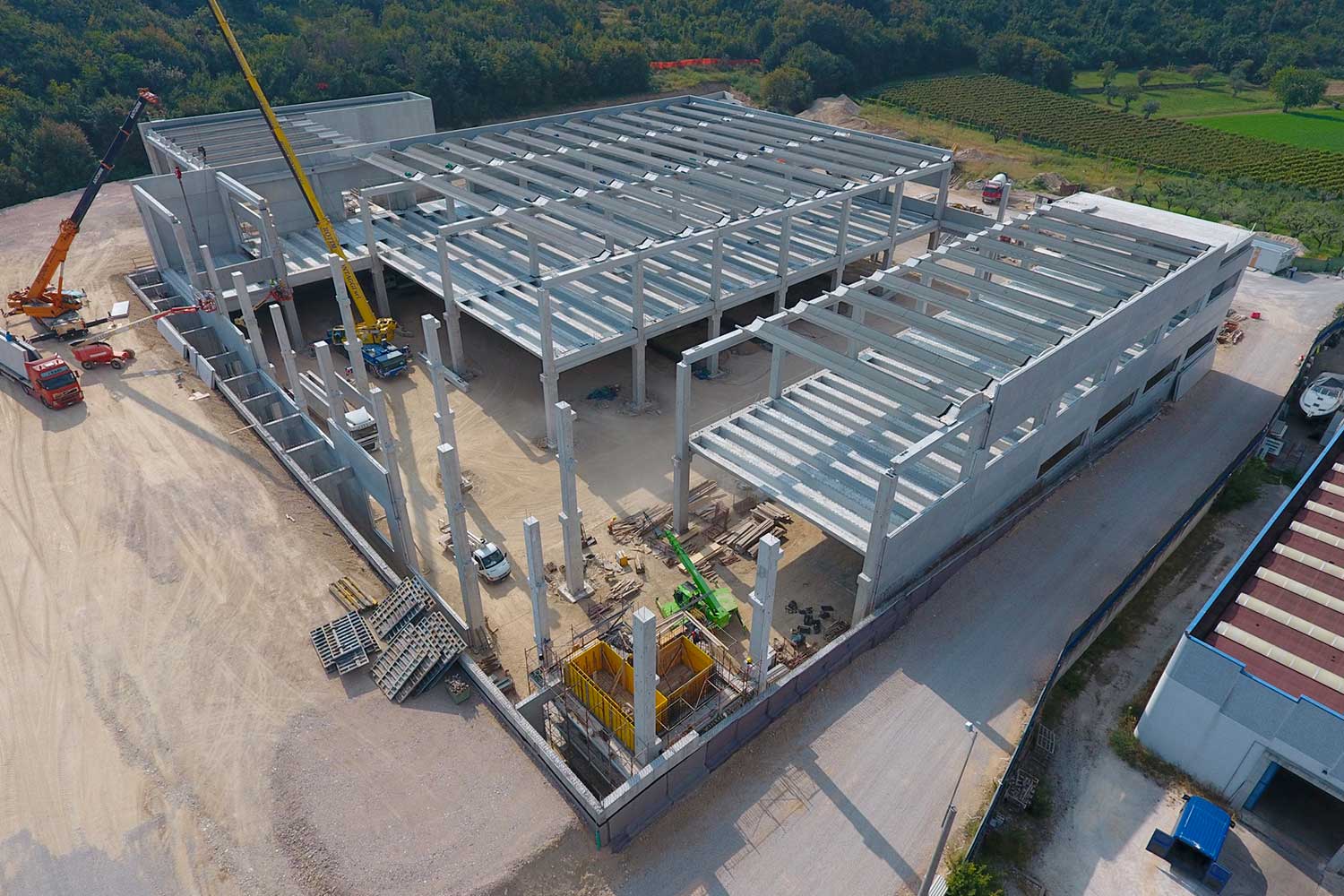 Delocalizzazione della vecchia sede dello stabilimento presso il nuovo sito posto nel comune di Salò, il progetto coordinato dallo “Studio Ermes Barba Mauro Salvadori architetti associati”, ha visto nascere la nuova struttura composta da un corpo principale posto su due livelli, dove sono state collocati i macchinari per l’imbottigliamento e una magazzino automatizzato.